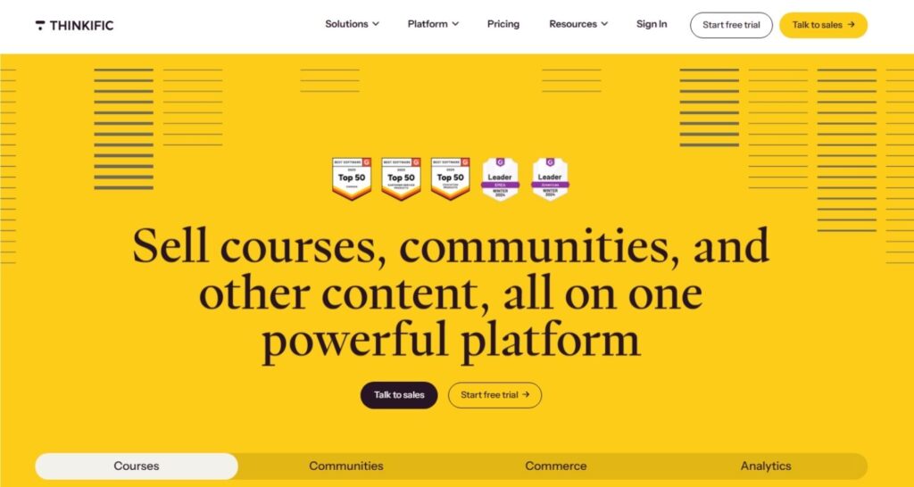 Turn your knowledge into income with Thinkific — the easy-to-use platform for creating and selling online courses. Build, host, and market your own learning business, no tech skills required.